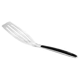 This fish turner serves it's purpose well.The durability is excellent and the brushed steel combined with the rubber-like black grip is perfect for my kitchen!I purchased all of the Calphalon brushed steel & black cooking utensils and they're all of excellent quality.And it can turn large pieces of fish as well.You won't go wrong with this turner.Click Here to see more reviews about: Calphalon Stainless Fish Turner