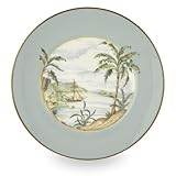 An inviting cove awaits you in this work of art for your table. Here, designer Chuck Fischer brings the beauty of the tropics to a mesmerizing scene on Lenox fine china. In the background, a sailboat enters the harbor. In the foreground, a pair of palm trees flank the scene, their graceful fronds peeking over the plate's border.