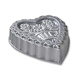 A frilly design with no-frills effort! Dazzling floral details and a nonstick coating make this heart-shaped pan perfect. It's a pretty presentation that offers easy cake release and cleanup.Proudly made in the USA by Nordic Ware.